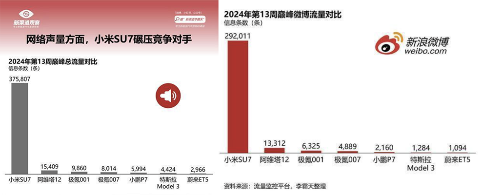 TikTok、Bilibili等のプラットフォームで拡散された小米SU7に関する面白いコンンテンツは車愛好者だけでなく、一般市民の関心も引き、製品の知名度が著しく向上しました。これは雷軍チームが意図的に行ったマーケティング戦略であったと考えられます。