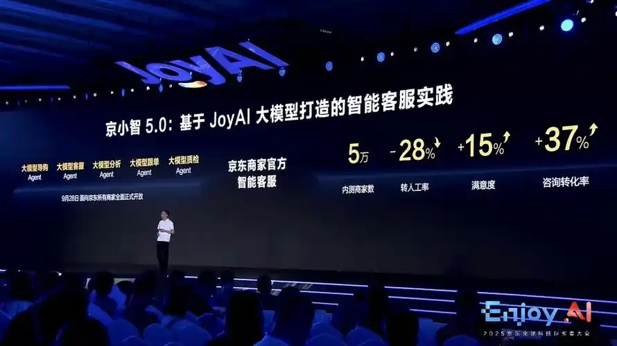 「京小智5.0」は、京東がJoyAIの大規模モデルとマルチエージェント技術を基盤として開発した、EC向けAIカスタマーサポートシステムです。主に中小規模の事業者向けに無料提供されており、顧客対応の効率化や問い合わせから購入までの転換率向上を目的としています。問い合わせ対応、接客、注文管理、データ分析、品質管理まで、顧客対応に必要な業務プロセスをエージェントが一気通貫で実行できることが特徴です。その結果、有人対応への切り替え率は28%以上削減され、問い合わせから購買への転換率を37%改善しました。